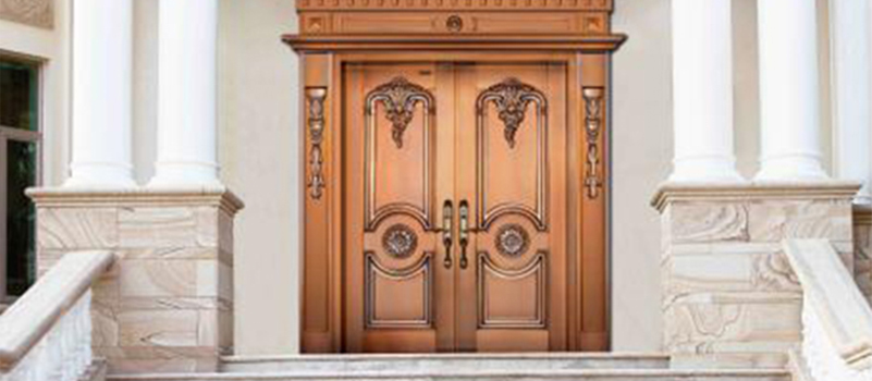 銅材具有質(zhì)地溫潤,耐腐蝕,抗氧化,不變形等優(yōu)良特性?,F(xiàn)代銅門根據(jù)銅材 固有特性結(jié)合古今之工藝,融合東西理念,加之現(xiàn)代技術(shù)與手工的完美結(jié)合使其具有 外觀典雅莊重,氣質(zhì)渾厚,使用安全方便的特性,不僅僅是表面的豪華,更是一種 文化底蘊的彰顯,身份地位的象征!